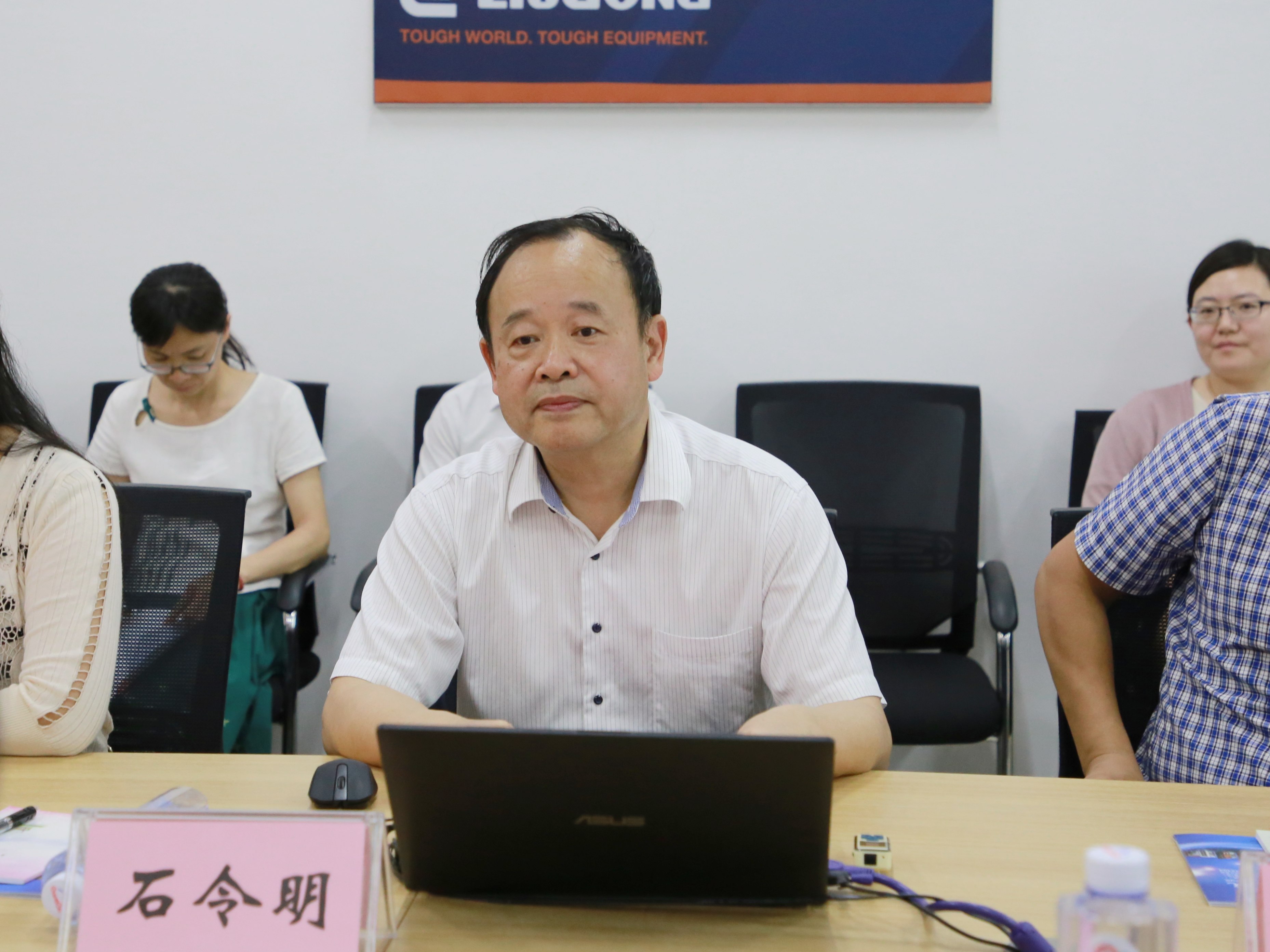 柳工机械股份有限公司总裁助理廖吉华介绍柳工与学校进行校企合作情况