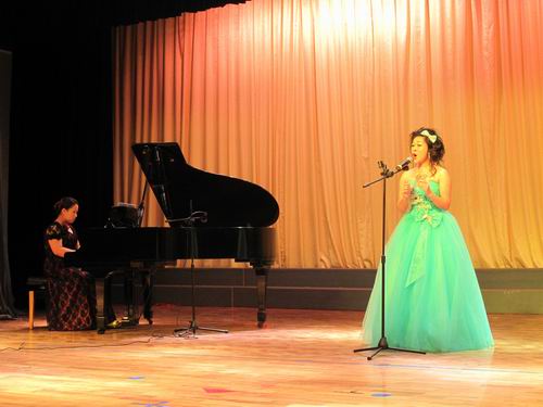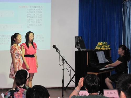 随后,《声乐》国家精品课程主讲教师赖沙颖的一堂声乐公开课,依据了《高职声乐演唱与教学》课程标准进行教学设计,以声乐作品为载体,以职业技能的培养目标为主干,展开教学?!渡帧饭揖房纬探萄哦拥摹凹寤嵴锟巍?,以学生为本,师生互评互动,在教学中运用了现代科技手段,利用微格技术,科学合理地将声音、演唱有机地结合在一起,体现了声乐教学改革的新思路。受到了专家、老师们的一致好评!