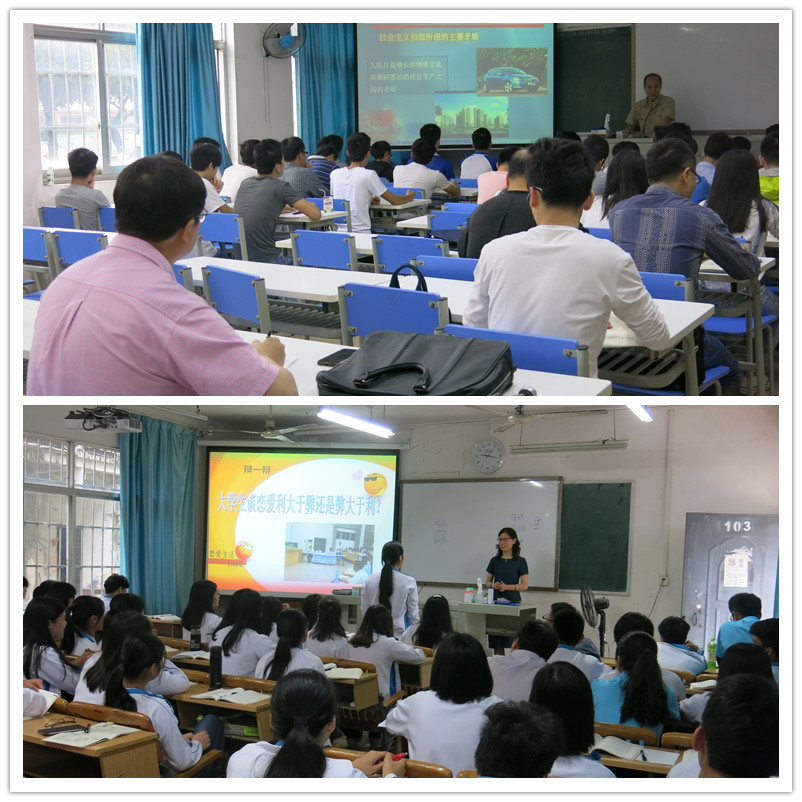 新闻网消息(文/图 公共基础部 黄志卫)5月19日上午,广西高校思想政治理论课教育教学指导委员会副主任委员、广西师范学院李继兵教授代表自治区教育厅、高工委到我校检查思政课课堂教学情况。校党委副书记阳旭、思想政治理论课教学部主任陈芳和部分思想政治理论课专任教师陪同听课。