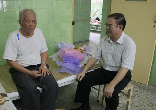 院党委书记朱伟才到医院看望退休老师梁浩帮