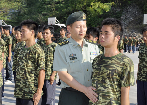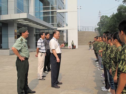 我院2010级新生军训已进行了一个多星期,学院领导及各部门、各系领导非常重视学生综合素质的培养,关心新生军训工作。2010年9月20日,烈日当空,学院全体新生继续坚持在校园各训练场进行紧张有序的训练。学院党委书记朱伟才、副书记阳旭、院长助理李彰汉在学院武装部部长莫帮雄、副部长钟旭、学生工作处处长梁毅等同志陪同下来到各系训练现场视察新生军训情况,慰问军训团全体官兵,对他们表达了亲切的问候。