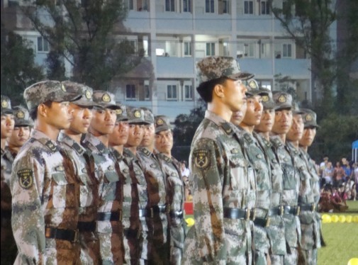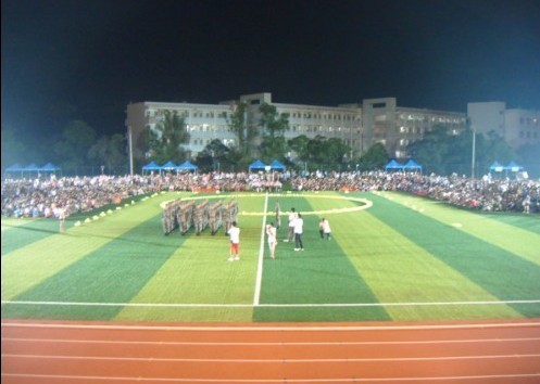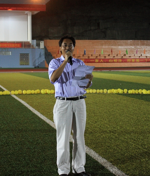当晚,新运动场上,光影璀璨,成为了一个温馨的大舞台。虽然下着蒙蒙小雨,但是丝毫没有影响教官和师生们的激情。由2010级新生组成的方块队列围绕在用黄色气球围成的一轮圆月周围,与老师教官们一起开始了庆中秋联欢会。阳旭副书记发表讲话,给全体教官和全院师生送上了中秋的祝福,并对新生的大学生活提出了殷切的希望。
