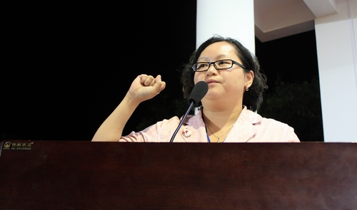 接着,学院教学名师,信息工程系副教授归奕红老师上台发言。她鼓励同学们从转换角色适应环境、明确学习目的、刻苦学习自强不息等三方面行动起来,扎实地走好大学每一步。期间,归奕红老师采用互动的方式,使用通俗易懂的寓言来鼓励在场的新生,教育他们在求学道路上,唯有付出努力,方才收获耕耘,实现心中梦想。