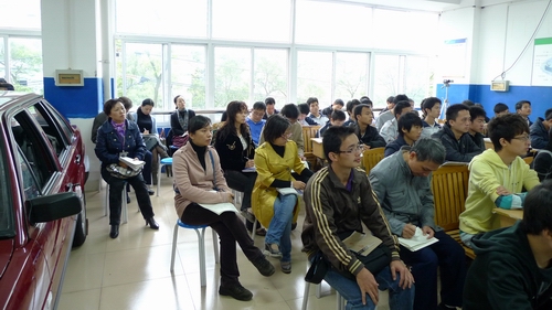 2010年10月27日上午第二节课,在竞择楼301教室,进行了第一场精品课公开课活动。汽车与环境工程系的谭新曲老师为大家上了《汽车电子与电气系统检修》的公开课。张翔副院长、教务与实训管理处鞠红霞处长、机电工程系、汽车与环境工程系、电子电气工程系、基础部等系部的领导和老师20余人前来观摩。