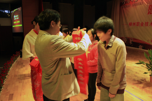 党委副书记阳旭为“榜样力量”学生精英代表授绶带