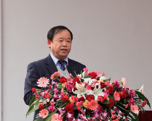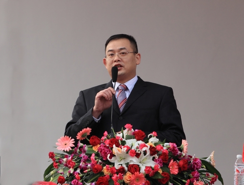 9点整,庄严的升国旗仪式后,学院院长石令明致开幕辞。他首先对本次运动会的隆重开幕表示热烈的祝贺,对本次运动会的策划组、体育组的筹备人员以及付出辛勤劳动的全体教职工人员表示感谢。他说,学院运动会的举办是我院师生弘扬中华体育精神,培养全面发展的高素质人才的重要举措。他希望通过田径运动会,锻炼学生的体魄,增强学生各方面的综合素质;希望全体教职工能够在此次运动会中发挥全员参与的体育精神,为学生起到一个模范,使自己的健康得到锻炼;希望运动员在比赛中团结合作,顽强拼搏,充分展示“更快、更高、更强”的体育精神;希望裁判组人员在此次比赛中做到严肃、认真、公平、公正,最后,石令明院长祝贺本次运动会取得圆满成功。