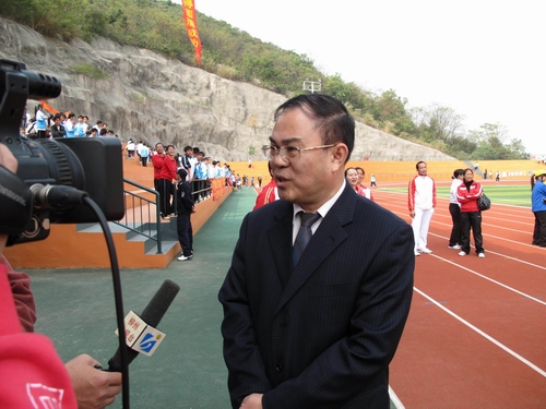 我院在新建运动场举行的首届运动会受到媒体关注,朱伟才书记接受柳州电视台记者采访