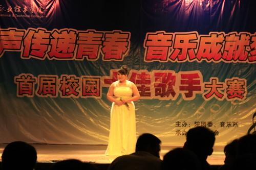 为了丰富校园文化生活,展现柳职院大学生积极向上的精神风貌,在院团委、音乐系的精心策划下,我院首届“校园十佳歌手大赛”之196进50强复赛阶段于2010年11月12日下午在荣军校区大礼堂顺利开赛。此次大赛由音乐系的杨胜慧、张哲、赖沙颖等六位老师担任评委,而进行复赛的196名选手分别来自学院各个系、并在海选大赛中脱颖而出的同学。