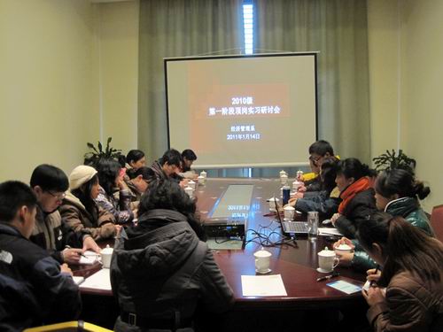 2010年1月14日经济管理系组织各教学团队负责人及相关工作人员召开了2010级第一阶段顶岗实习研讨会。