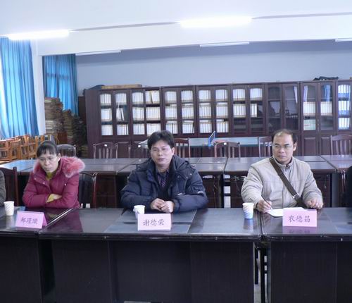 2011年1月17日下午,广西机电职业技术学院公共教学部谢德荣主任带领英语课程负责任人和骨干教师一行六人到我院公共基础部进行考察交流,受到公共基础部姜献生主任、陈芳副主任、高职英语教学团队负责人及骨干教师的热情接待。