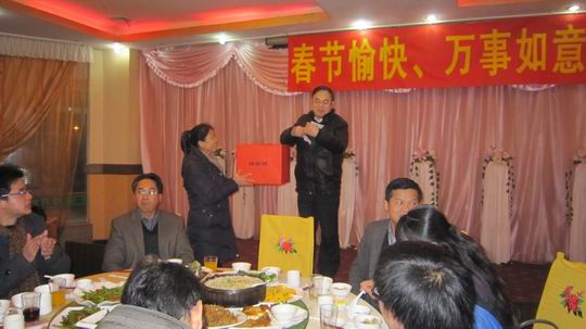宴会上,阳旭副书记代表学院党委向全体留校同学致以节日的问候和良好的祝福,祝大家春节快乐,在新的一年里身体健康、学习进步,并通过同学们转达了学院对家长们的春节祝福。他说到,2010年是难忘的一年,是学院跨越发展的一年;2011年将是充满希望的一年,他希望全院师生同心协力,共谋发展,迎来学院发展的新一轮春天。