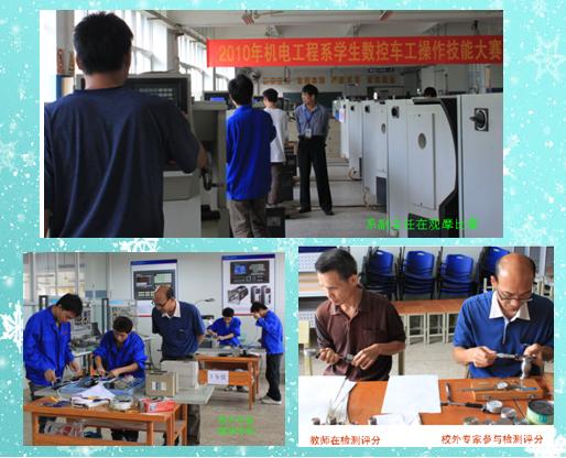 近年来,学院不断加强对学生职业道德、职业素质、职业技能的培养,努力提高教育教学质量,营造具有高职特色的校园文化,注重对学生实践技能的培养。把专业技能竞赛作为全面提高学院学生技能一个平台,作为检验学院教育教学质量重要渠道,作为专业实践教学的有效延伸。学院技能竞赛始终坚持“技能竞赛和教学改革相结合原则;竞赛内容与与职业技能标准相结合原则;学院组织与企业参与相结合原则;专业技能与通用技能相结合原则;全面参与和重点培养相结合原则”,根据每个专业的特点,设计专业技能竞赛项目,并纳入人才培养方案。通过每年举办全院性的职业技能竞赛,让每一位学生都有机会参加至少一项与所学专业相关的技能竞赛。目前学院已构建了完整的院系两级竞赛体系,营造“人人参与技能竞赛,人人争做技能高手”的良好学习环境和氛围,激发了广大学生学技术 、钻技术 、练本领的热情,提高了学生技术素质,并锻造和选拔出一批批技能高手,使学院在参与各级、各类竞赛中佳绩不断。