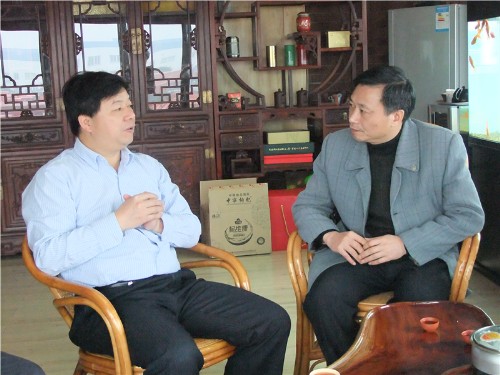 柳州延龙汽车股份有限公司吕刚董事长(左)与继续教育中心黎刚处长深入探讨合作项目