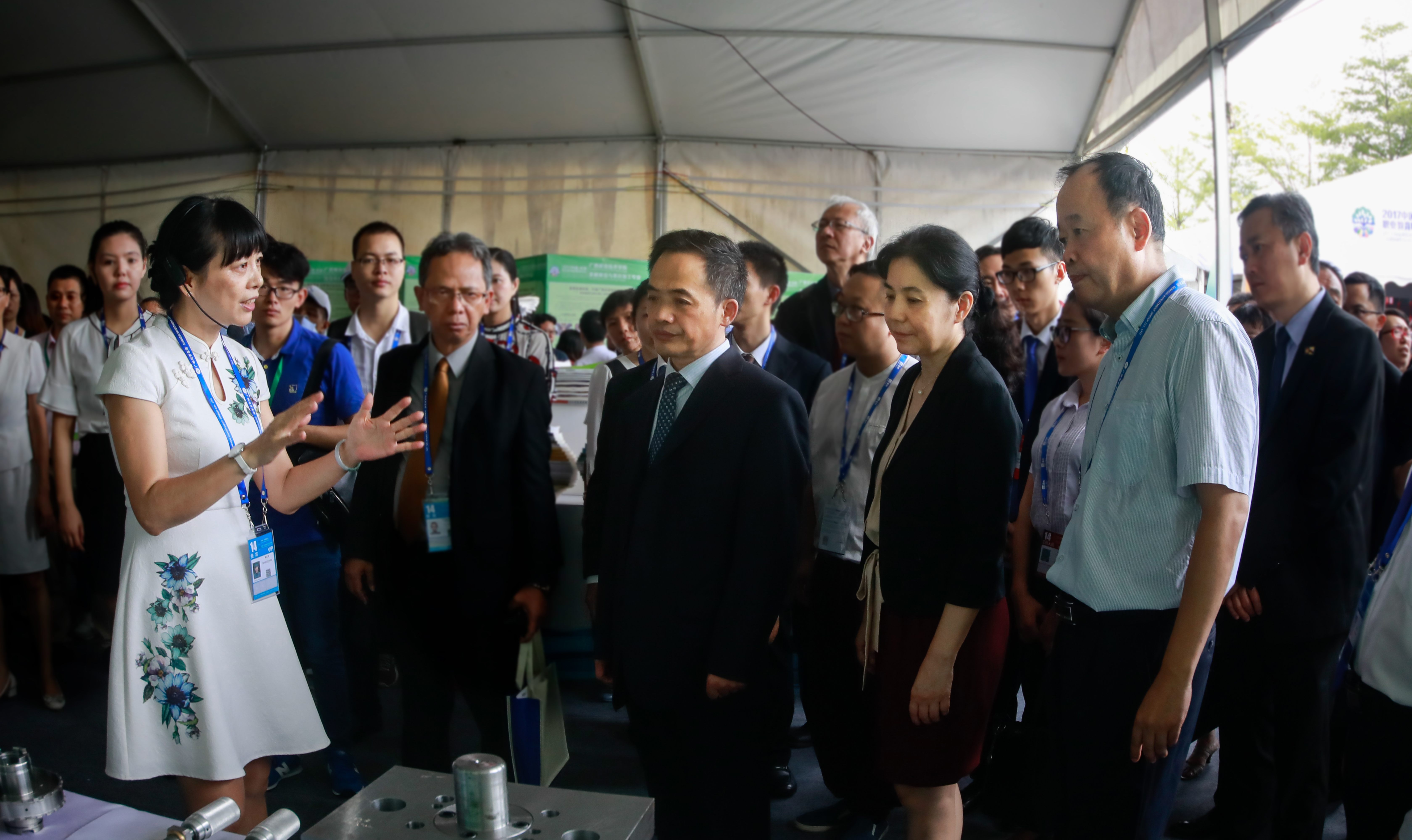 教育部党组成员、部长助理郑富芝,广西壮族自治区副主席丁向群,自治区教育厅副厅长黄雄彪先后参观了学生技术技能展。在人才培养展区的装备制造类专业??榍?,鞠副校长为嘉宾们重点介绍了我?!妒丶际酢纷ㄒ涤氲伦势笠挡砂f诠竞献?,开展“双元制”本土化试点的情况和成果。她边说边展示学生的作品平口钳和活塞支承架,“这个‘平口钳’由该专业一年级学生在德国教师的指导下,经过两个月的训练独立完成,这个‘活塞支承架’由三年级学生制作,是柳工装载机核心的零部件,在校内生产性实训基地生产,产品达到了德国QR83质量认证标准?!绷斓己图伪雒瞧灯档阃繁硎驹扌?。一位企业家在看到学生们加工出来的活塞支承架后说“能加工出这个零件的学生,他的技能肯定不错,我们企业就想招这样的毕业生。”
