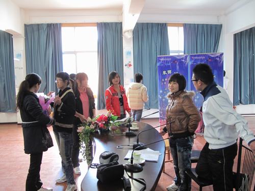 2011年3月27日下午,博雅·分享第十一期节目在学院电视台3号演播室(德馨楼301)成功录制。宣传部部长左妮红,经济管理系学生专干陈月明老师、系学生代表到现场观摩,宣传部全体指导老师、电视台全体工作人员参加了现场录制工作。