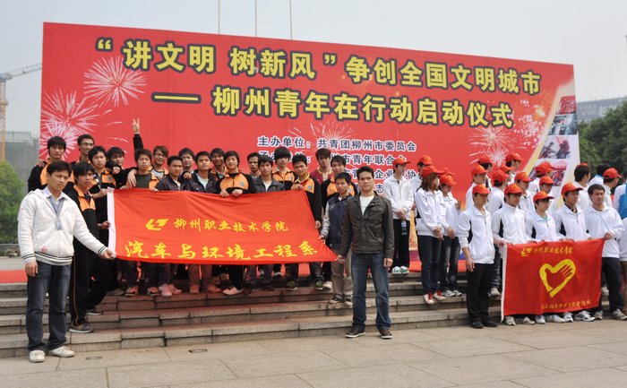 2011年4月10日,柳州职业技术学院100多名学生代表参加了由团市委、市青年志愿者协会、市青联、市青企协和市学联在市人民广场举行的“讲文明 树新风 争创全国文明城市——柳州青年在行动”活动的启动仪式。