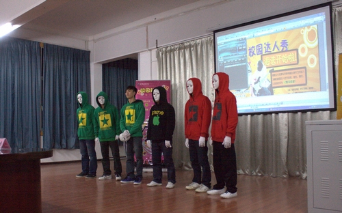 “因为有梦想,所以秀自己”,柳州职业技术学院“校园达人秀”活动首轮海选于2011年4月7日、8日晚分别在学院电视台二号、三号演播室及德馨楼101教室进行。