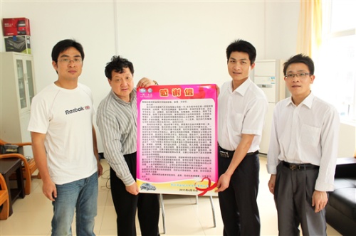 2011年4月15日上午,柳州市盛铭汽车贸易有限公司廖柳军副总经理等一行来我院汽车与环境工程系交流,汽车与环境工程系主任卢明热情接待了来宾。廖柳军副总经理手里拿着的“感谢信”尤为引人注目,原来他们此行是为了感谢为公司培养了优秀员工的学院和老师。