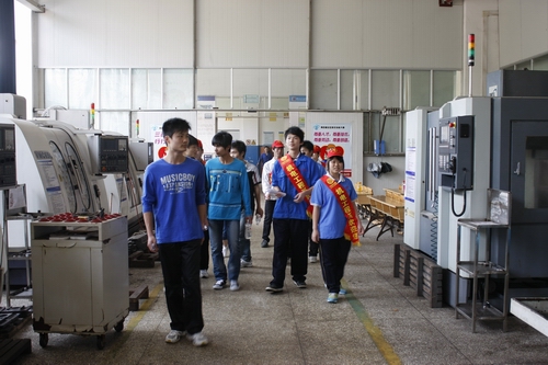 考生在志愿者引领下参观学院实训基地