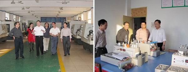 熊文华教授在广西现代职业技术学院领导陪同下参观该院实训基地