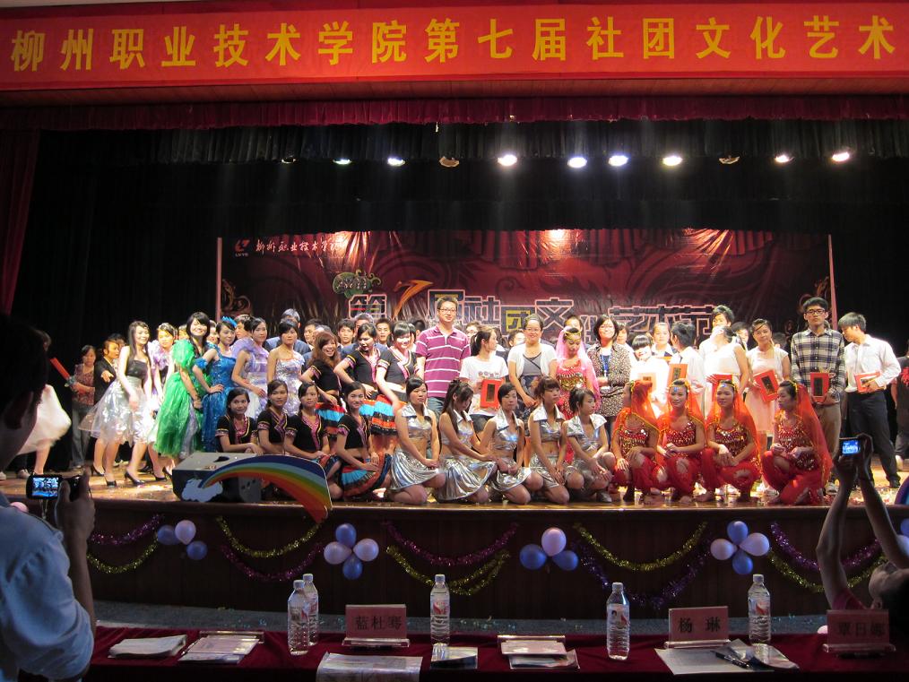 青春在社团里燃烧,梦想乘着文化飞扬。为期一个多月的我院第七届社团文化艺术节,其最为华丽精彩的闭幕式文艺汇演于2011年5月15日下午在学院艺术校区大礼堂隆重举行。院团委书记杨琳、院团委老师韩霄、周虹以及各系分团委书记出席了晚会,来自柳州市八大高校社团联合会学生代表及我院各系学生会、各社团代表共计500多人参加了此次活动。