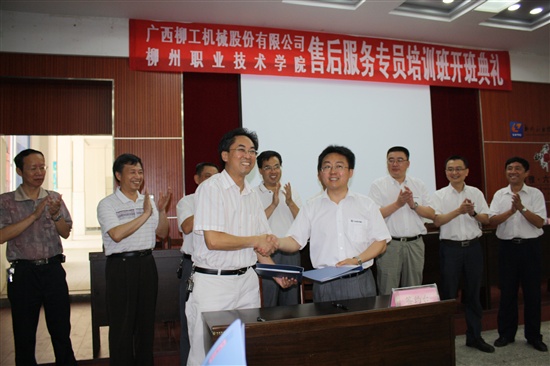 在热烈的气氛中,校企双方签订合作协议书,“柳工—柳职院海外售后服务培训班”正式开班。(文、图/覃柳青)