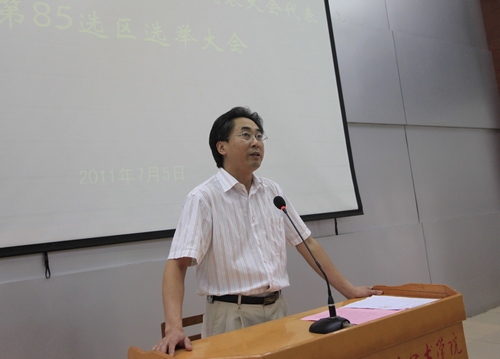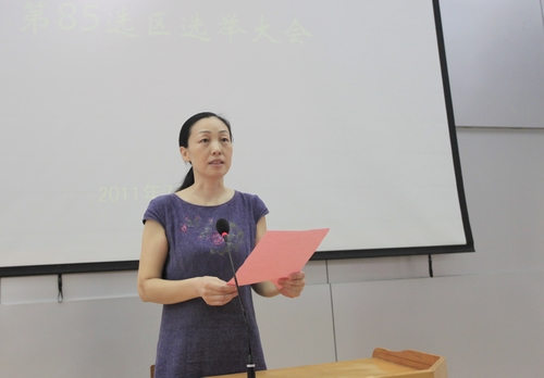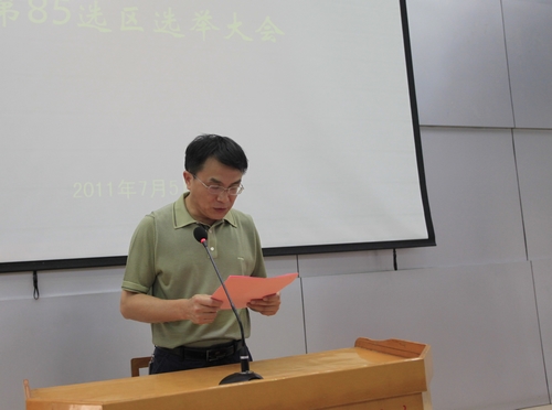 在选举大会上,我院选举工作小组组长、学院党委阳旭副书记受鱼峰区选举委员会的委托,主持了选举大会的选举工作。张翔副院长宣读本选区正式代表候选人名单。林若森副院长宣读了《鱼峰区第十一届人民代表大会代表选举办法》。