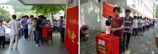 本次选举投票分选举大会会场投票、投票站投票、流动票箱投票三种形式进行。我院根据实际情况,设选举大会主会场1个,投票站9个,流动投票箱3个,组织选民以无记名投票方式进行差额选举。
