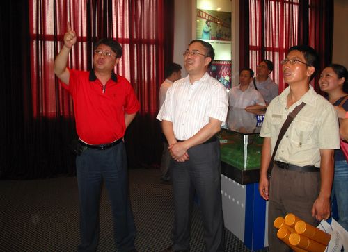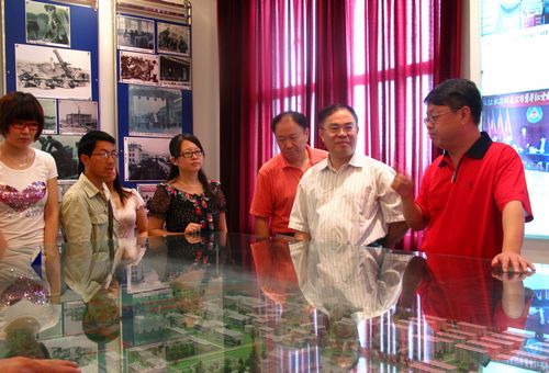 我院党委朱伟才书记(中)一行在长虹机器制造公司党委林忠书记(左)陪同下参观公司史馆