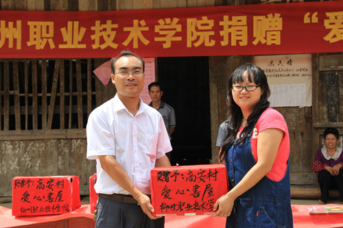 2011年8月18日至8月21日,在学院学生工作处副处长、团委书记杨琳老师,团委韩霄老师的带领下,柳州职业技术学院暑期“三下乡”社会实践队伍在柳州市融水苗族自治县洞头乡高安村开展了为期四天的“三下乡”社会实践活动。此次活动以“永远跟党走 服务新农村”为主题,共开展“四大活动”。一是开展社会调研活动,与当地村民开展座谈会,了解当地风情民俗,深入了解体验农村生活,并在与村民互动中进行社会主义新农村建设情况及农村儿童教育模式的调研;二是图书捐赠活动,捐建一个“爱心书屋”,丰富当地的图书资源,给村民们送去精神食粮,让孩子们更好地认识和了解外面的世界;三是支教服务活动,对农村儿童开设手工、魔术、音乐等课程;四是举办文体交流活动,通过举办篮球比赛、气排球比赛、播放露天电影等增进双方感情。