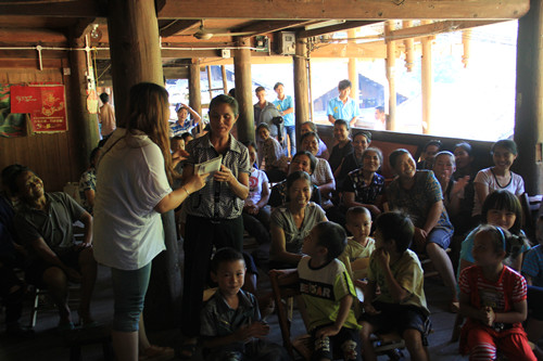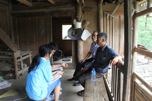 此次社会实践有一个重要任务就是进行“两个调研”活动,即“社会主义新农村建设情况”调研和“农村儿童教育模式”调研。社会实践小组成员们走进各家各户,亲切地和当地的老人拉起了家常,交谈中真挚的话语赢得了老人们的信任与称赞。通过走访调查,社会实践小组了解到高安村新农村建设的基本情况:1.人口有1200人左右,面积广,村里的主要收入来自木材和竹子的种植。2.当地的医保普及率很高,经当地政府部门统计,高安村村民的医保普及率高达95%;3.安全防范意识高,由于当地的住房都是木质结构,并且连接紧凑,所以一个寨子里会建有一个大的蓄水池称作防火池,以便发生火灾时能及时扑救,电线是完全用塑料管作线槽装置的,自然原因很难引起火灾和触电事故;4.技能培训方面,当地政府定期组织村民进行电工,林业种植、水稻种植等方面的培训。而关于儿童的教育现状,社会实践小组了解到高安村以及附近村子的农民常年在家务农,粮食自给自足,经济来源比较稳定,鲜有外出务工的情况,所以留守儿童比较少。村里的孩子年龄段分布在6—13岁之间,6—10岁的占大部分。该村的村教育点为两层砖房,只有一名老师授课,年级只有一至三年级。四年级以上的孩子是寄宿在乡里的中心小学。村里大部分孩子入学比较晚,原因有两个,一是村屯的教育点师资条件差,照顾不了那么多学生;二是家中父母对子女教育问题不够重视,未能及时送子女上学。针对这些情况,社会实践小组将在活动结束后将资料整理形成调查报告并向高安村提出解决问题的建议。