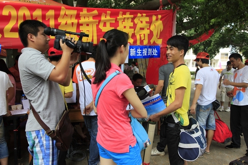 柳州电视台对学院迎新工作进行采访报道