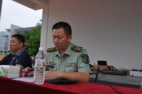 初秋时分,金风送爽,2011年9月9日,我院2011级新生军训动员大会在田径运动场召开。75107部队政治处主任江学武、学院党委副书记阳旭、院长助理敬志轩、保卫处处长(武装部部长)莫帮雄、学生工作处副处长杨琳、各系相关负责人在主席台就座,军训教官、指导员(各系辅导员、班主任)以及近三千名身着迷彩服的2011级新生参加了大会?;嵋橛赡镄鄞Τぶ鞒帧?br> 上午9时,全体人员起立,奏响了催人奋进的国歌。国歌奏毕,莫帮雄处长宣布动员大会正式开始。