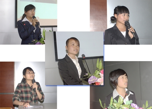 会上,2009级会计电算化专业学生韦雪琼、韦春菊、韦燕 、陆小燕、丘志红、曾婉婷分别代表本班进行“顶岗实习—真账训练”经验总结汇报,汇报了在训练中的所获、所感、所想,同时对母校及恒企集团给予本次训练机会表示了感谢。