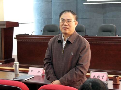 党委书记朱伟才做讲话,号召学习优秀教师的高尚品德