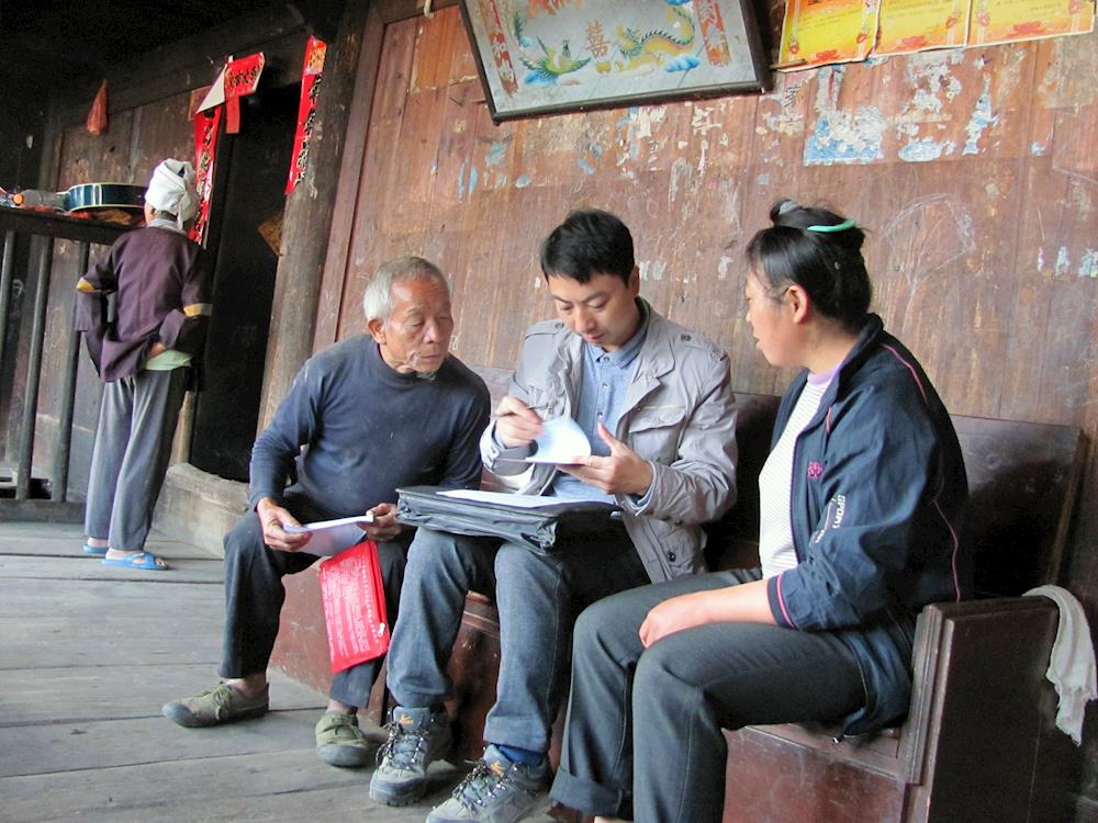 阎志斌(中)走村入户进行贫困户的精准识别统计