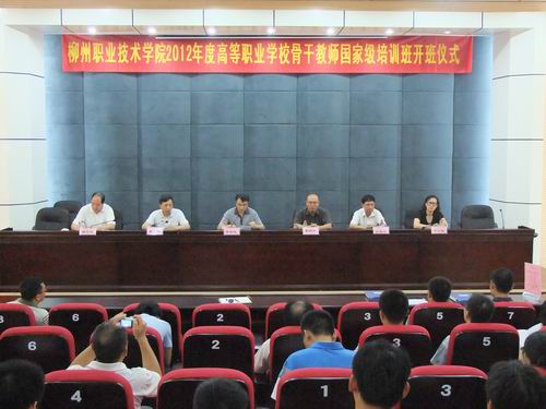 7月24日上午,我院隆重举行2012年高等职业学校专业骨干教师国家级培训开班典礼,欢迎来自全国9个省、自治区的101名位高职学校的电子技术专业、汽车技术专业、机械制造类专业的骨干教师。学院继续教育中心主任黎刚主持了开班典礼,学院副院长林若森、柳州福臻车体实业有限公司综合管理部部长莫翔明、机电工程系书记安掌明、汽车工程系主任周文海、电子信息工程系韦小波参加会议。