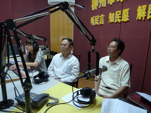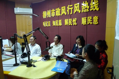 2012年4月11日中午,按照柳州市纪委、市委宣传部、市直机关工委、市监察局、市广播电视局、市纠正行业不正之风领导小组办公室、柳州日报、柳州广播电视台联合下发的《关于认真做好2012年上半年“政风行风热线”节目的通知》(柳纪发[2011]29号)的要求,我院党委书记朱伟才同志带领党委副书记、纪委书记阳旭,纪委副书记、监察室主任傅昌德,教务处处长鞠红霞,招生就业处处长黄莉,党委学生工作部副部长、学生工作处副处长(主持工作)唐冬雷,后勤与资产管理处副处长伍柳等同志到柳州市广播电视中心参加《政风行风热线》栏目的现场直播。