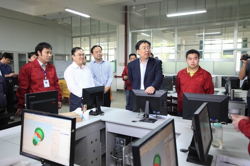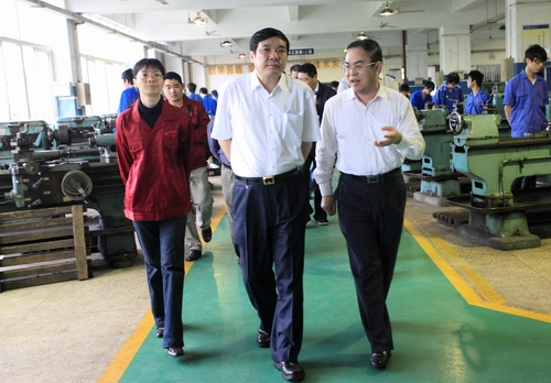 葛道凯司长、高枫厅长、黄宇副厅长、刘建生副市长等上级领导一行在我院领导的陪同下,先后视察了我院机电工程系与汽车工程系的实训基地,详细了解我院开展校企合作、实训基地建设的基本情况。