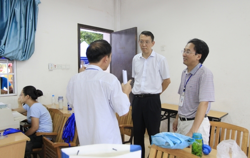 学院党委书记朱伟才、副书记阳旭在系部了解迎新工作情况