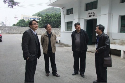 林若森副院长(左一)陪同评审组长郑一(左二)参观焊接车间