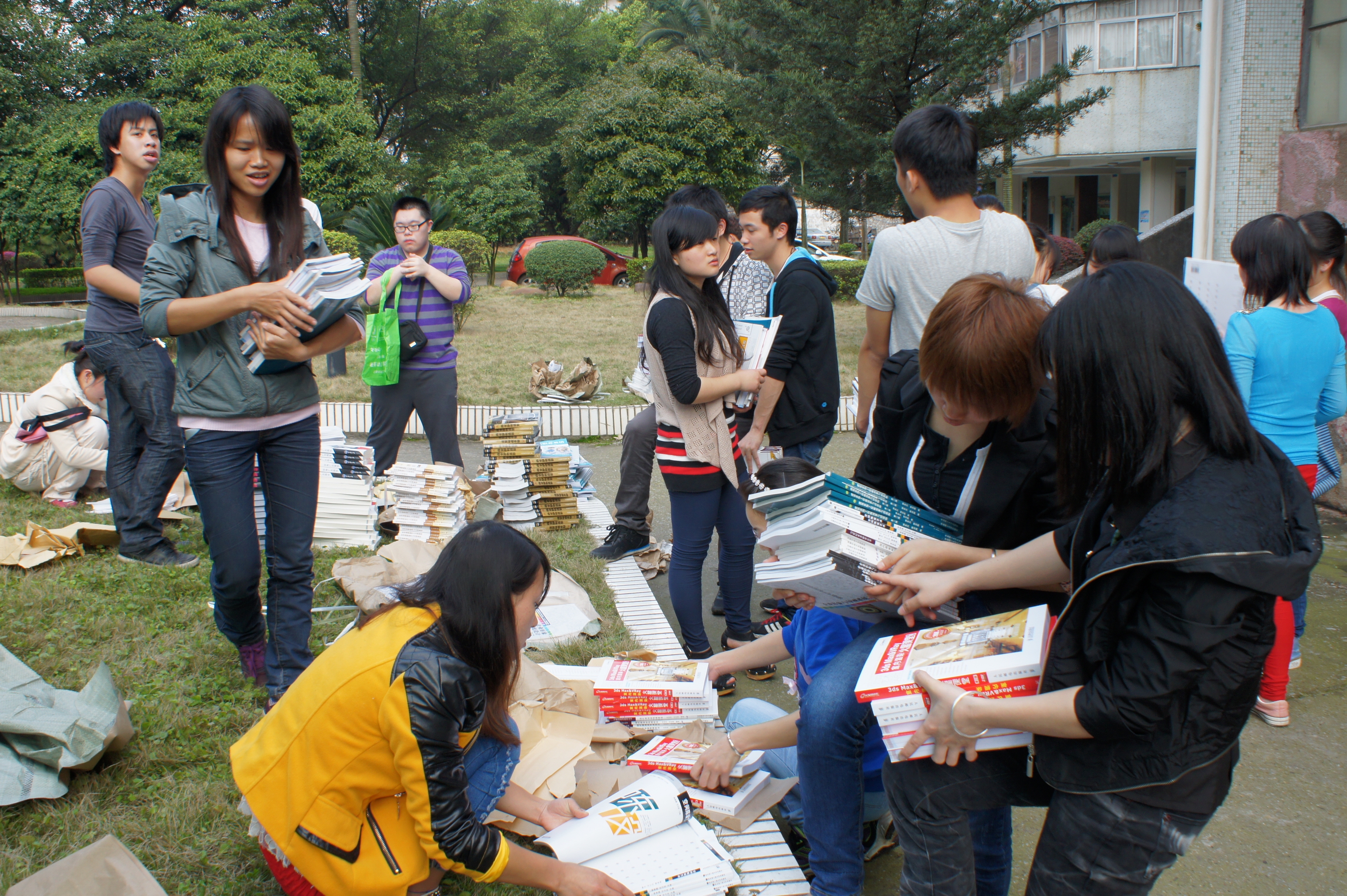 学生返校报到,领取教材