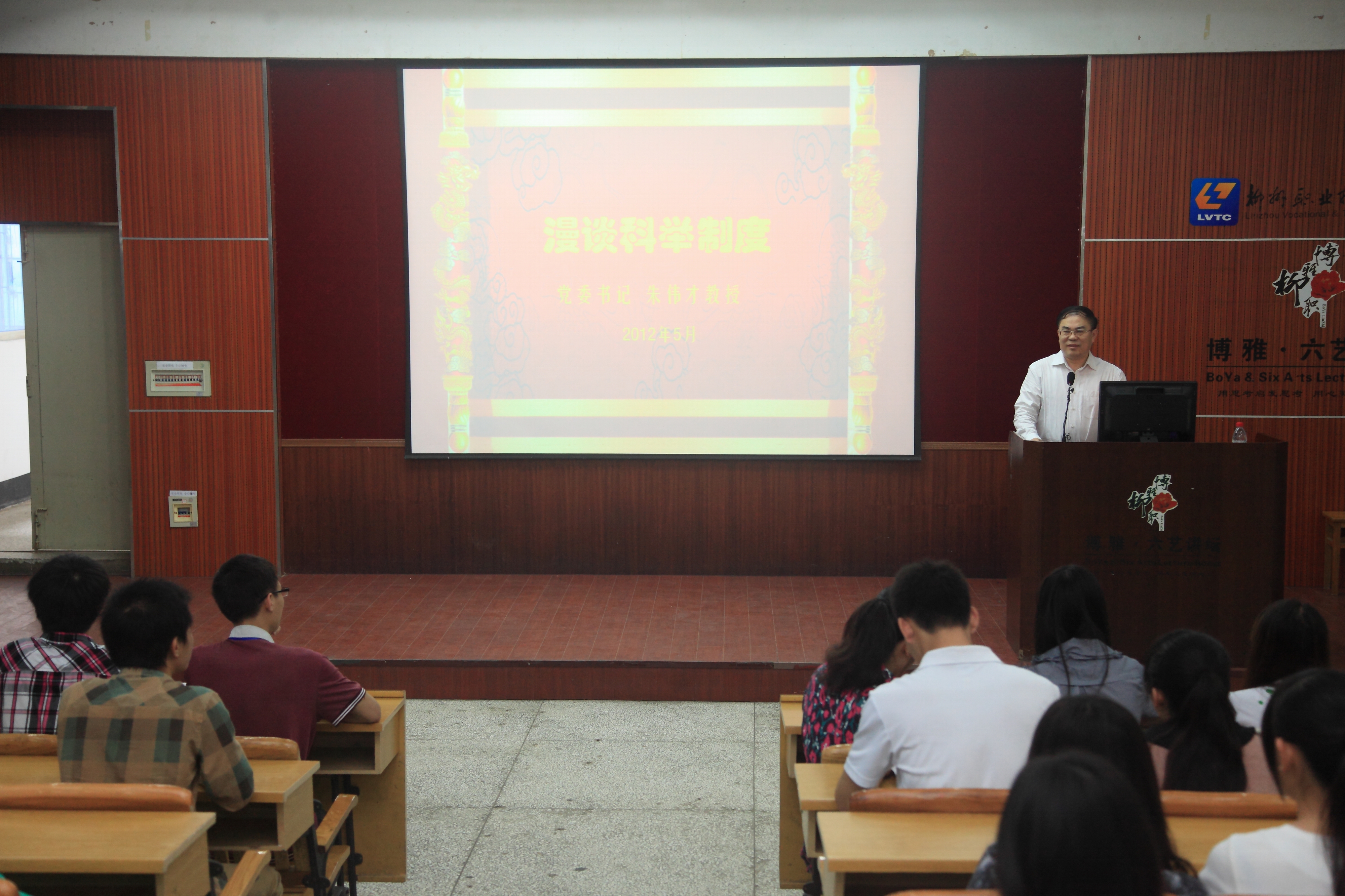 2013年3月22日下午,应博雅?六艺讲坛之邀,学院党委书记、历史学者朱伟才教授做客德馨楼101教室给我院师生带来一场题为《漫谈科举制度》的精彩讲座。