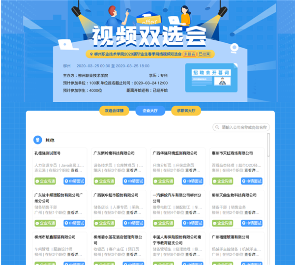 2020届毕业生春季网络视频双选会“企业大厅”