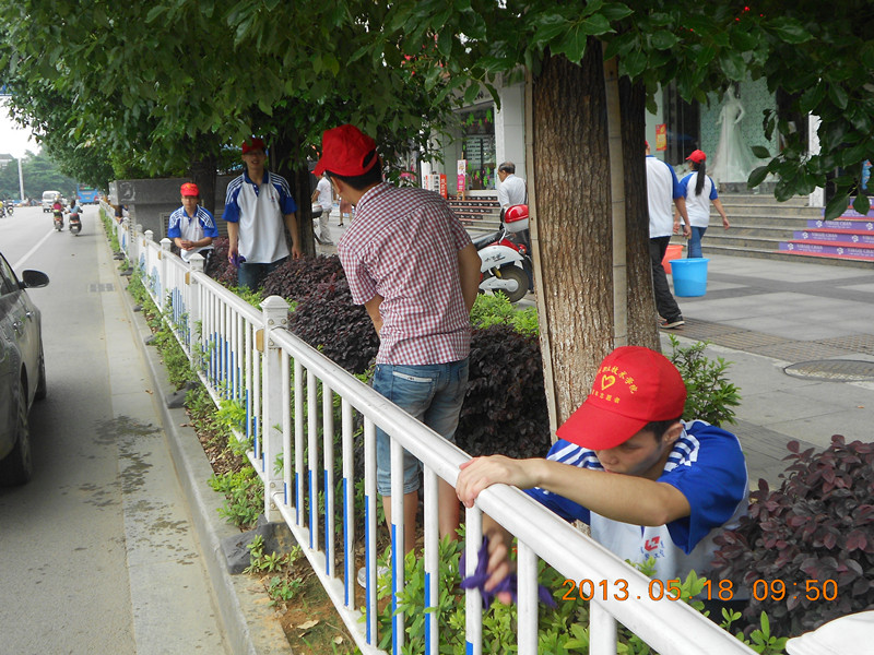 仪式上,柳州市副市长刘健生等领导出席并讲话,为我院以及到场的志愿服务队伍授旗,我院志愿者代表郑重接过旗帜,随后开始投入到清洁工作中。他们个个干劲十足,表现积极,不怕脏不怕累,不一会儿,就将五一路道路旁的栏杆、公交亭等公共设施擦得干干净净,柳州市五一路仿佛焕然一新!一位志愿者自我调侃道:“我们是勤劳的清洁工,脏了自己,干净了环境?!闭瓜至宋以褐驹刚咦魑贝嗄甑牧己梅缑病#ㄎ?院团委志愿者工作部 徐远笔、黄海宾 图/杨世海、农海雷)
