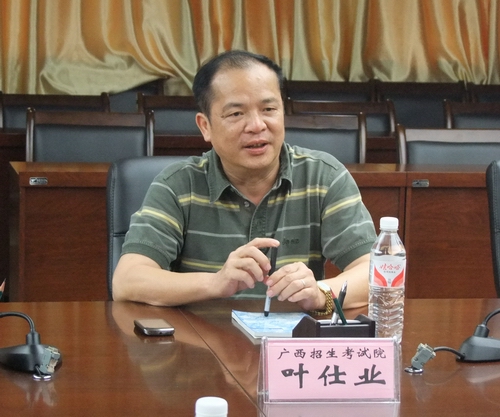 为认真落实教育规划纲要,提高全区成人高等教育招生考试服务广西新发展的水平,2013年7月2日,广西招生考试院叶仕业副院长、成招处邓金生处长、陈涤副处长一行4人来我院就高职高专院校实行成人高等教育单独招生的可行性进行调研。我院副院长林若森、继续教育中心主任黎刚、卢荷副主任及柳州市城市职业学院、广西生态工程职业技术学院、柳州师专等兄弟院校成教院主要领导出席了调研会议。