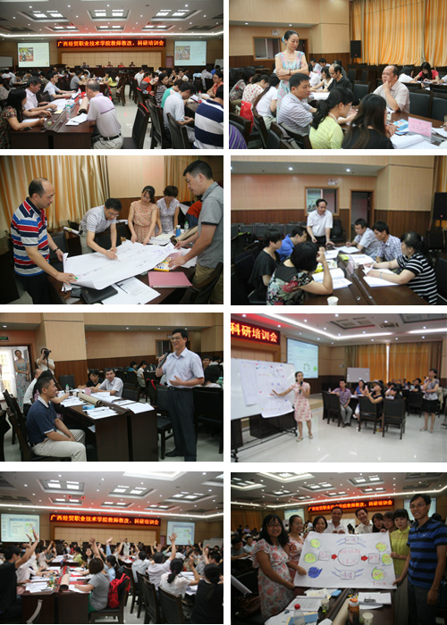 按照我院与广西经贸职业技术学院签订的《交流合作协议》要求,7月8日至7月9日,教务与实训管理处组织了韦林、谭欣、刘柳、林宁等4名年轻女教师赴广西经贸职业技术学院,为该院教师开展教师教学能力培训。她们以“行动导向教学导入与体验”为切入点,逐层展开“高职课程如何进行教学设计”、 “高职课程如何上好第一节课”、“高职课程如何进行说课”等内容的培训。4位培训老师精心的教学设计、精辟生动的讲解、清晰简洁的语言表达使得培训现场互动频繁、高潮迭起、掌声不断。年轻培训师们精彩的授课和我院教务与实训管理处精心的组织工作,得到了广西经贸职业技术学院院领导和老师们的高度认可和评价——“这一天生动的教学,从第一次互动迟疑地举起一只羞涩的手臂开始,到争先恐后地举手、回答,学员们以实际行动见证了行动导向教学的成效?!?/font> -