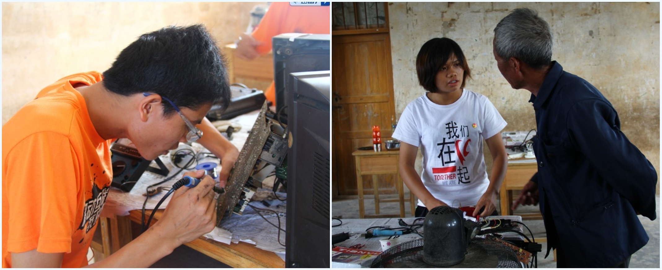 不怕苦不嫌累的家电维修组的志愿者们