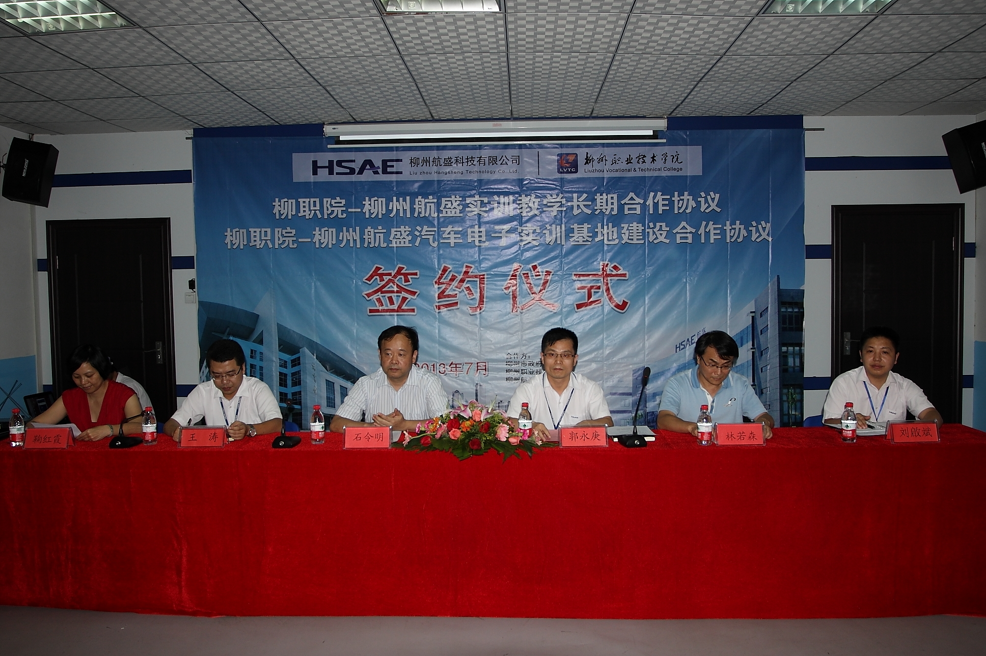 暑假期间,为了更好的推进柳州市千万元设备值生产性实训基地——汽车电子生产性实训基地项目建设工作,7月22日下午,柳州职业技术学院与柳州航盛科技有限公司的校企合作签约仪式在柳州市白露工业园区柳州航盛科技有限公司厂区二楼多媒体教室隆重举行。