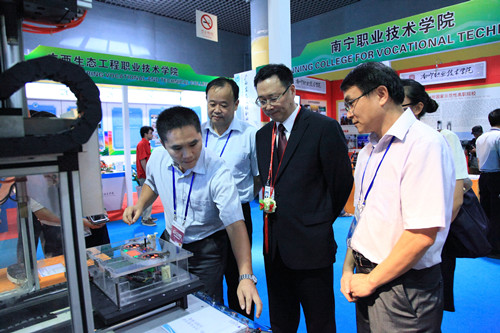 9月3日、4日,以“发展现代职业教育,服务经济转型升级”为主题的2013中国—东盟职业教育联展暨论坛在南宁市广西科技馆举行。我院和广西柳工路创制造科技有限公司(以下简称“柳工路创”)联合参展。我院独立参展的主要作品有数字化设计与制造设备一套、汽车组合仪表指针自动压装系统、民族刺绣工艺手袋、蜡染画,与柳工路创联合参展的先进制造工厂、ZF生产线、信息化实训中心等三个实训车间的沙盘模型。
